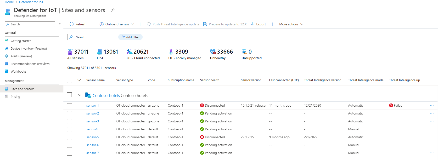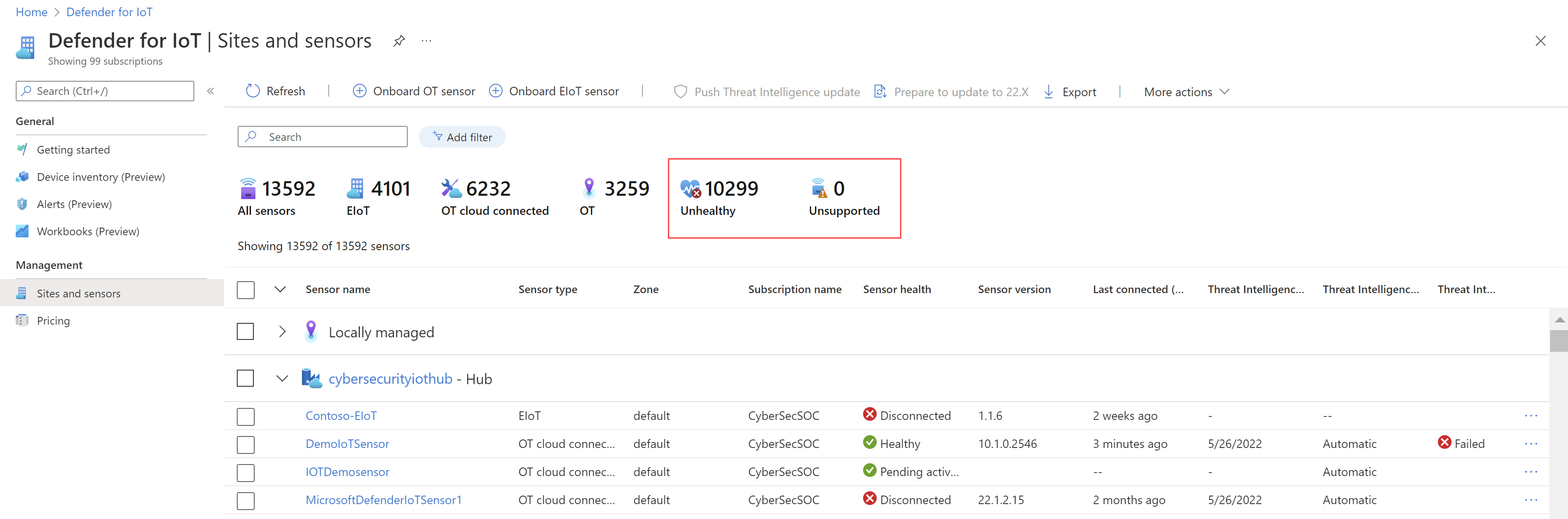 本文介绍如何使用 Azure 门户中的 Microsoft Defender for IoT 查看和管理传感器。