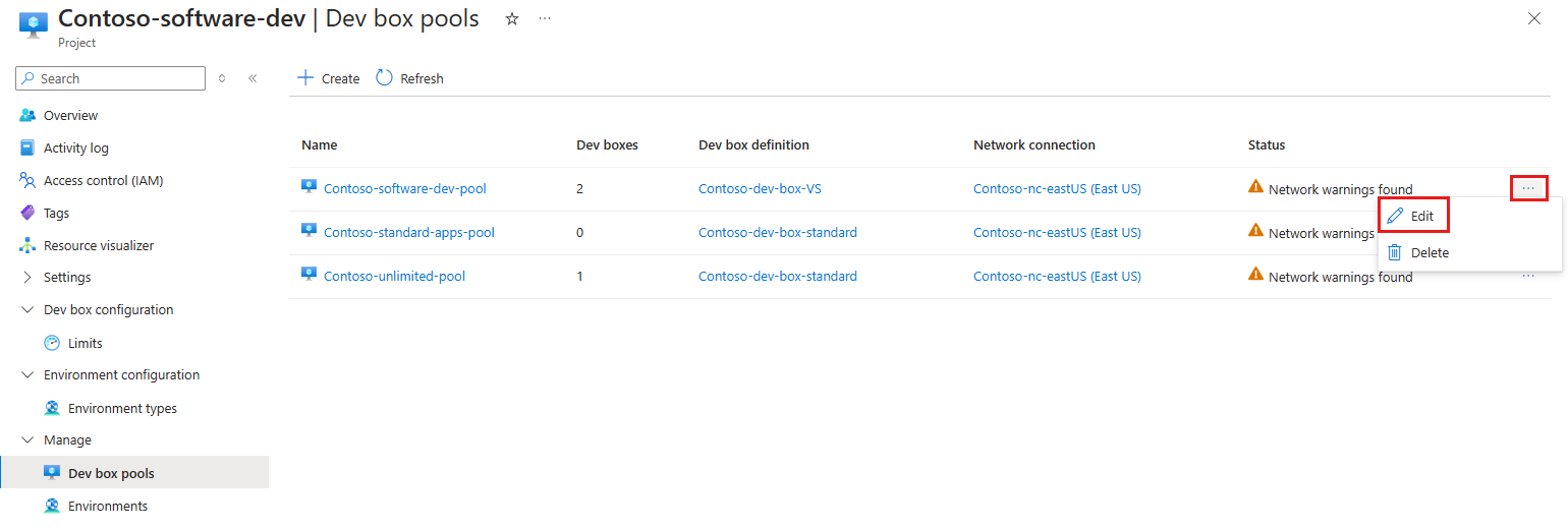 在左侧菜单中的“ 管理”下,选择 “开发框池”。