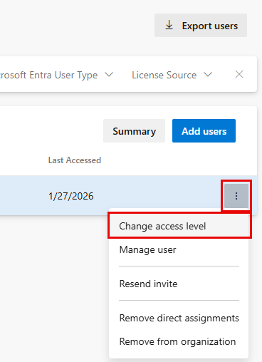 如果你是 Microsoft Entra Administrator,则可以将用户添加到目录中。 如果你不是 Microsoft Entra Administrator,请与目录管理员协作添加它们。 了解如何 使用 Microsoft Entra ID 控制组织访问权限。
