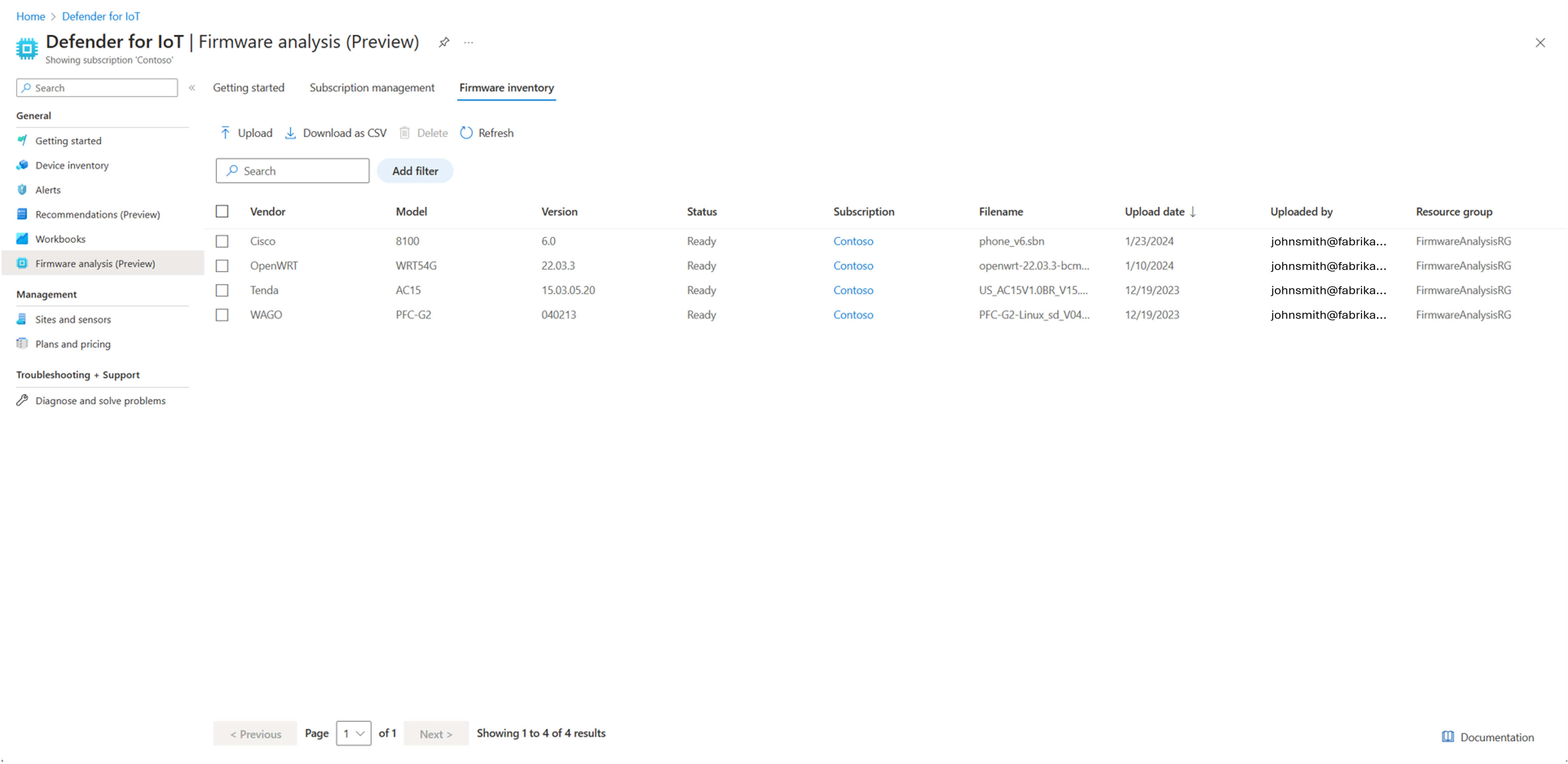 固件分析现在与 Azure 设备注册表集成,以便使用共享元数据将固件分析结果与Azure设备注册表管理的设备和资产相关联。