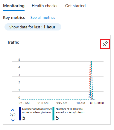 若要了解如何自定义指标设置并将其保存到 Azure 门户仪表板和磁贴,请参阅如何配置医疗技术服务指标。