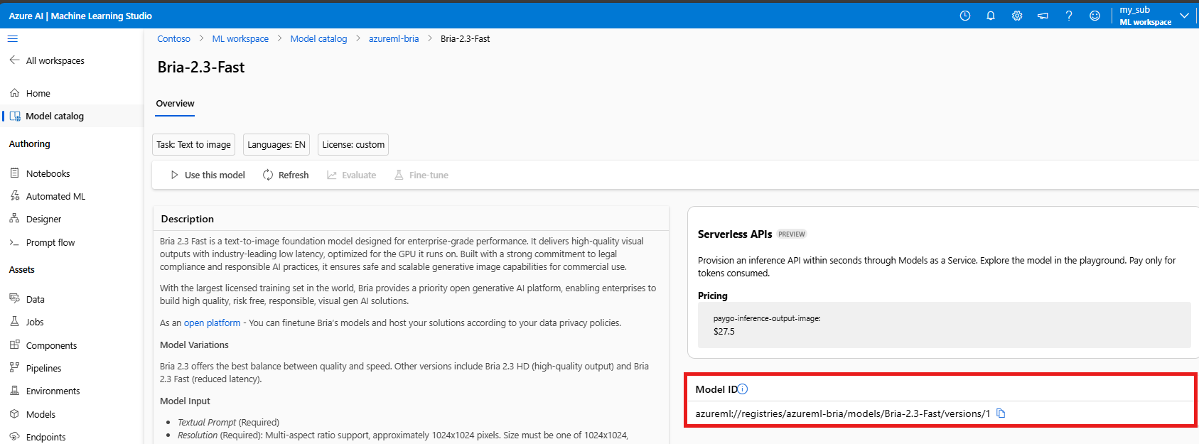 azureml://registries/azureml-bria/models/Bria-2.3-Fast/versions/1,请复制azureml://registries/azureml-bria/models/Bria-2.3-Fast。
