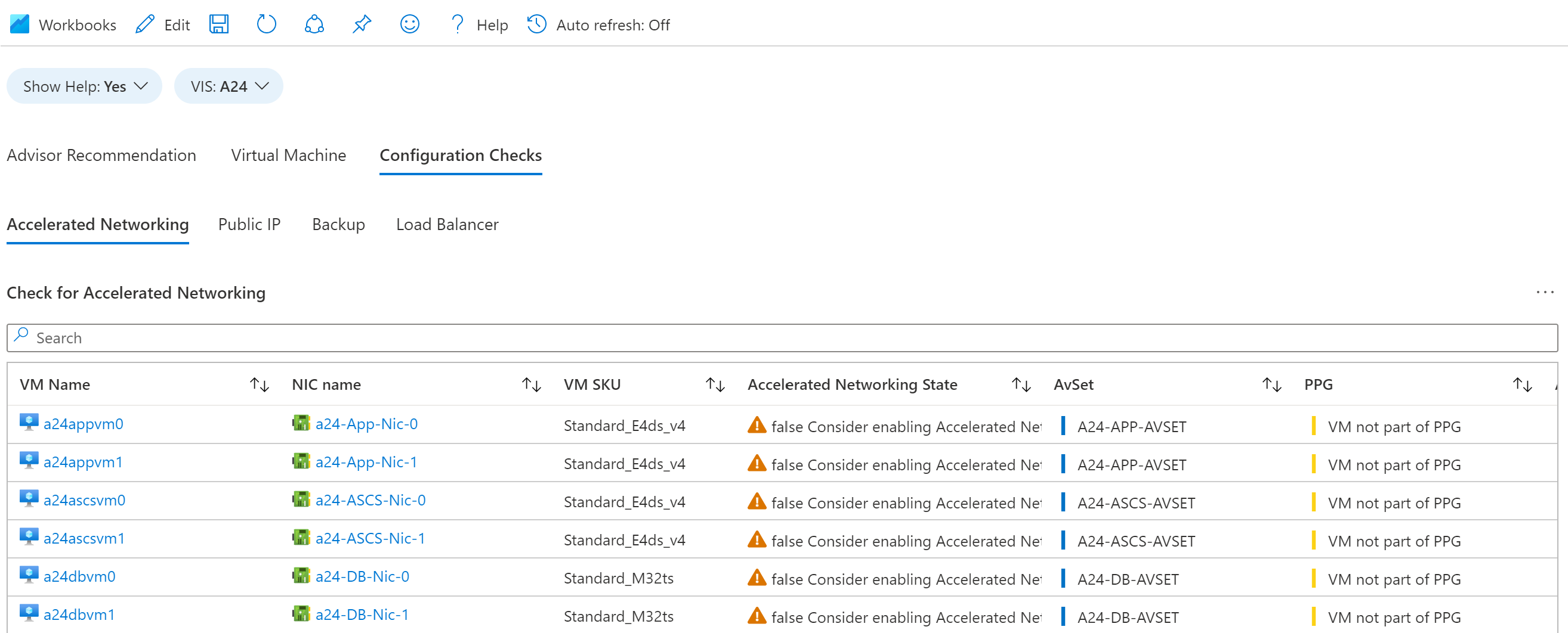 “配置检查”选项卡提供 VIS 中 VM 的配置检查。 它包含四个子部分: