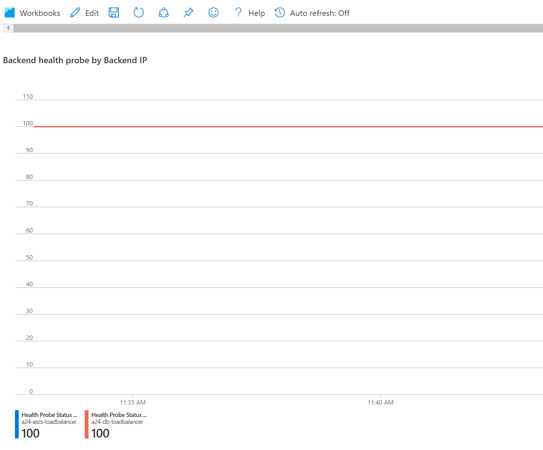 “后端运行状况探测(后端 IP)”是一个图表,其中显示了每个负载均衡器随时间变化的运行状况探测状态。
