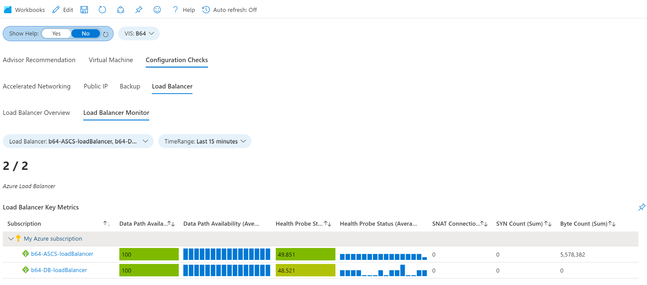 “负载均衡器关键指标”是一个表,其中显示了有关 VIS 所在订阅中的负载均衡器的重要信息。
