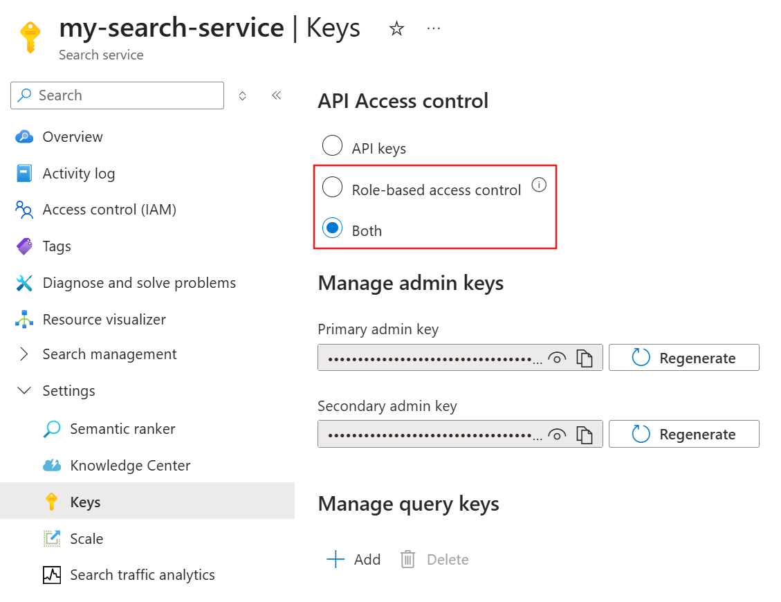 无密钥连接通过精细权限和基于标识的身份验证提供增强的安全性。 我们不建议使用硬编码的 API 密钥,但如果愿意,请参阅 使用密钥连接到 Azure AI 搜索。