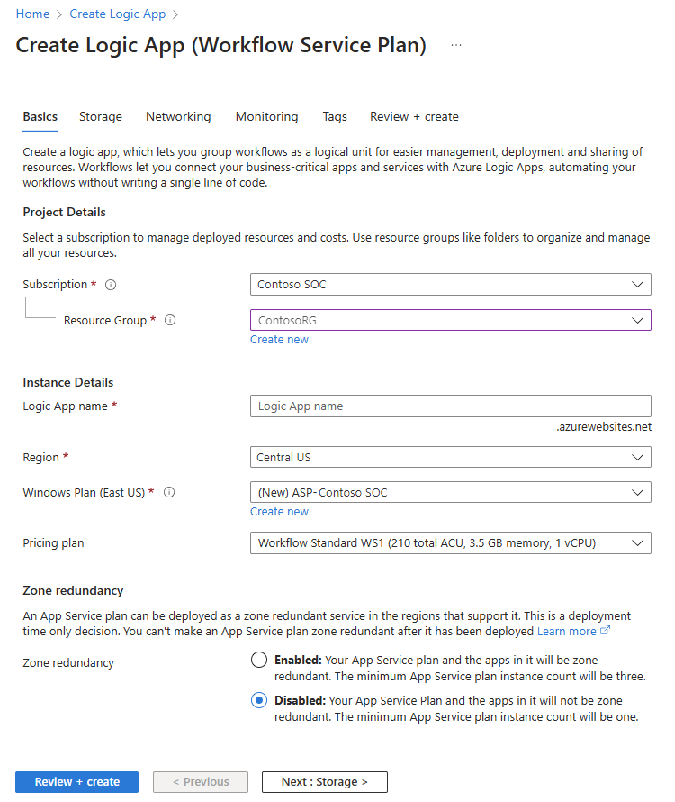 如果 playbook 需要访问 Azure 虚拟网络内部或连接到 Azure 虚拟网络的受保护资源,请创建标准逻辑应用工作流。