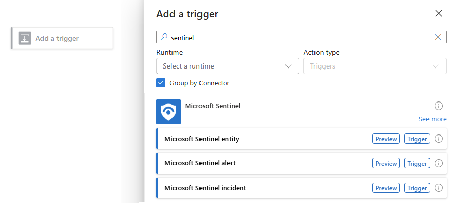 有关详细信息,请参阅 Microsoft Sentinel playbook 中支持的触发器和操作。
