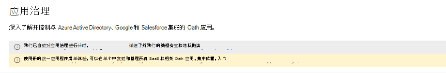 在 Defender 门户中 https://security.microsoft.com,转到 “资产>应用程序”。 或者,通过单击现有云发现和应用治理页上的横幅链接,直接转到 “应用程序 ”页。
