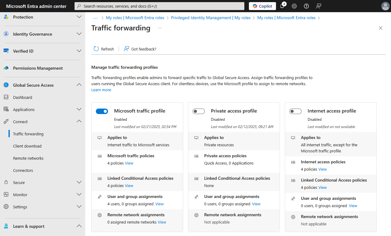 若要查看全局安全访问流量概况配置,请执行以下操作: