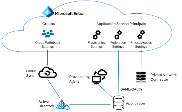 组织在为混合用户(即身份既存在于云中又存在于本地的用户)启用 AD 集成应用程序方面经常面临挑战。 通过利用 Entra 专用访问、权利管理和组写回,组织可以对混合用户实现对与 AD 集成的本地应用的受控访问。