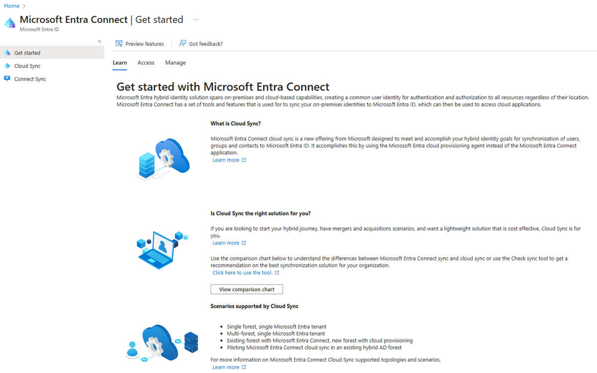 - 当系统提示你授权时,请为 Microsoft Entra 管理员提供凭据。 用户至少需要具有 混合标识管理员 角色。
