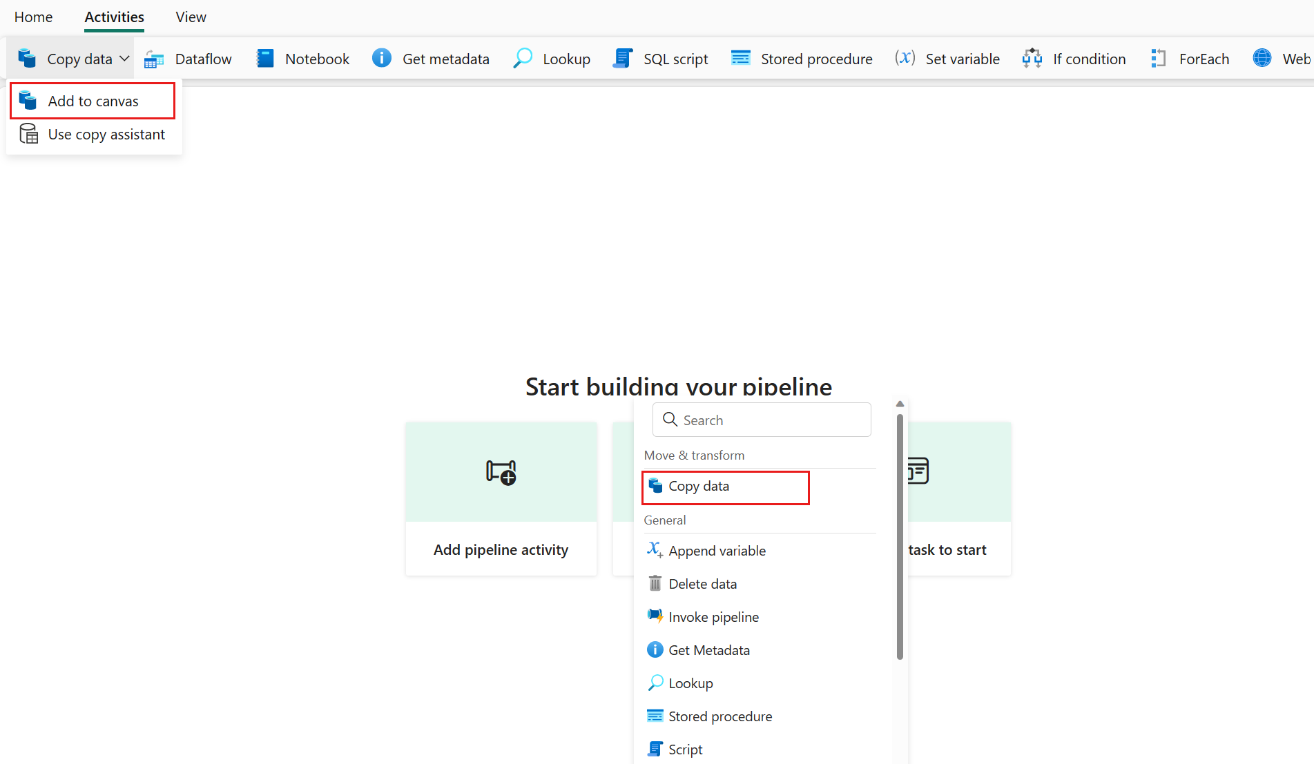 请按照以下步骤直接添加复制活动。