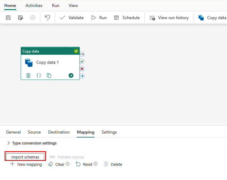 选择“导入架构”以导入数据架构。