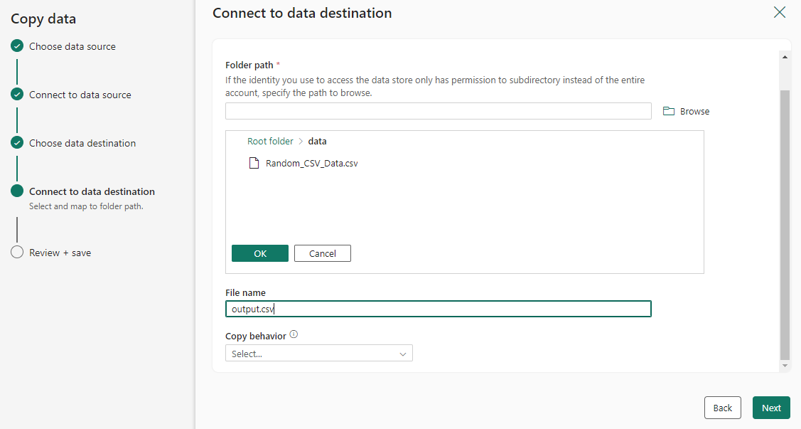 选择要在此源配置步骤中复制的文件或文件夹,然后选择“下一步”。