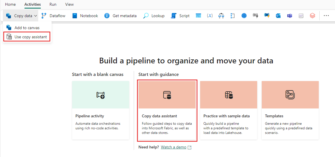 使用复制助手添加复制活动