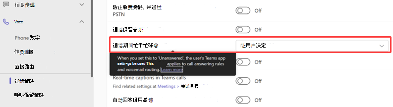 - 默认情况下,此功能处于关闭状态,并要求管理员在 Teams 管理员设置中启用设置。 稍后将在Microsoft Teams 管理员中心使用用于控制此功能的设置。