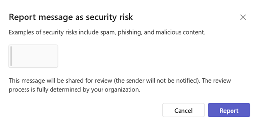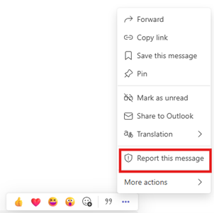 在 Teams 中看到有关聊天或频道消息的用户可以将它报告为安全风险。 若要报告消息,请执行以下作: