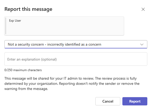 Teams 消息的用户报告设置 - 不是安全问题
