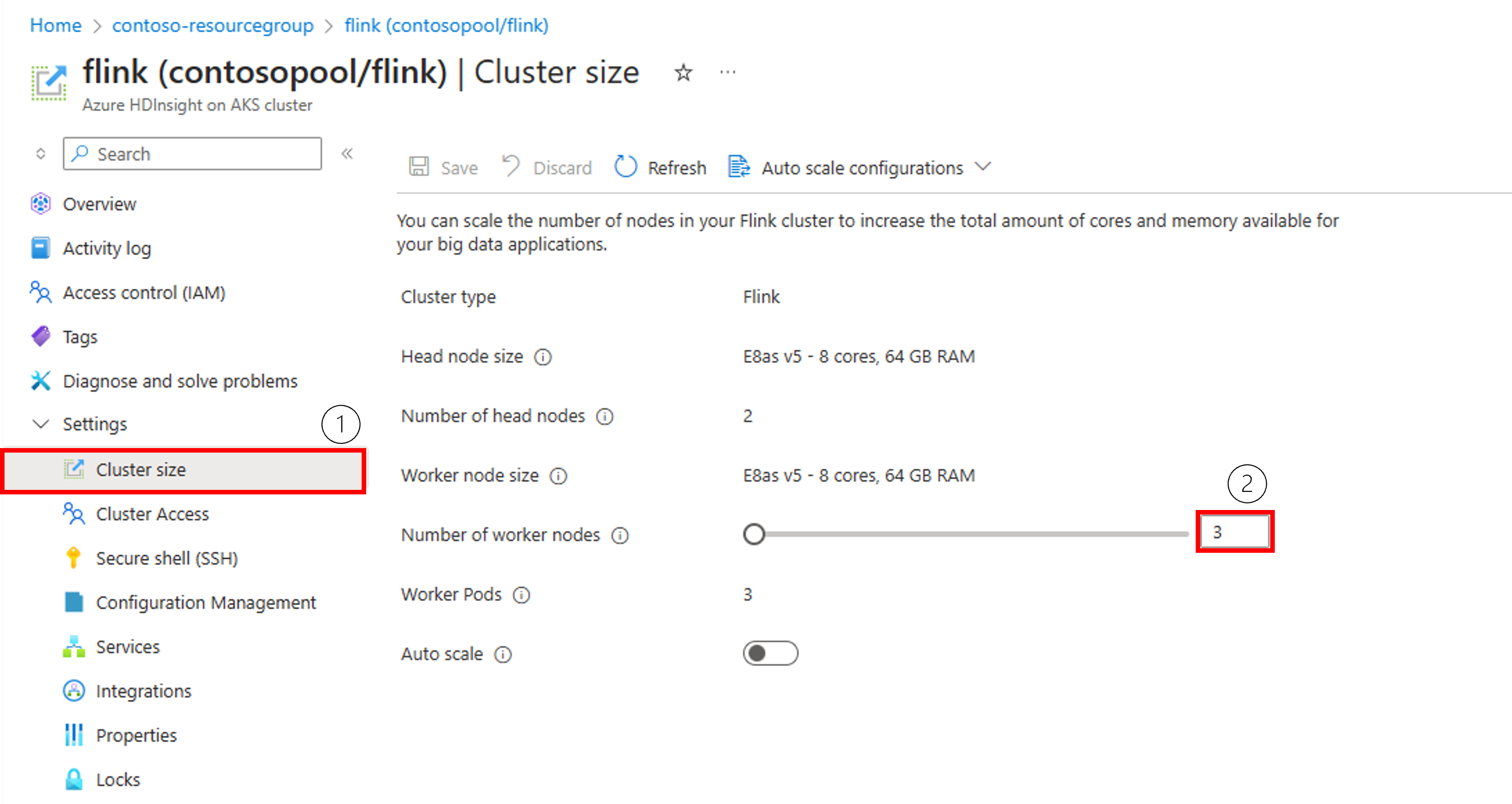 建议在扩展操作之前管理订阅中设定的配额,以避免配额错误。 在缩减之前,请注意,要使 AKS Trino 群集上的 HDInsight 能够正常运行,至少需要 个 活动节点。