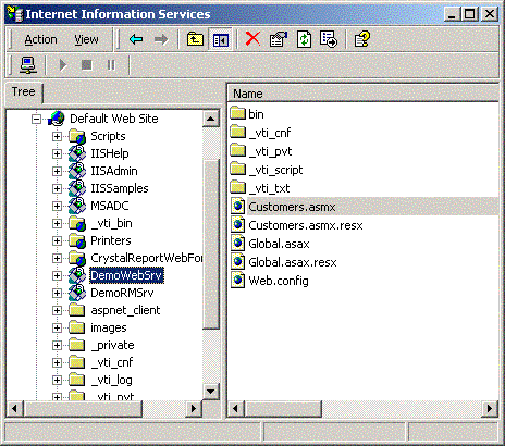 在 /bin 子目录中,有一个名为 DemoWebSrv.DLL 的程序集。 CLIENT1 上目录结构的物理位置为 C:\INETPUB\WWWROOT\DEMOWEBSRV。 CLIENT1 上的 C:\INETPUB\WWWROOT 路径映射到 WWWROOT 的网络共享名称