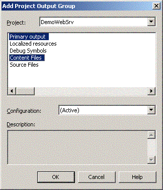 6. 在“添加项目输出组”框中 (图 3) ,从“项目”列表中选择“DemoWebSrv”。