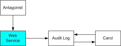 例如,对抗者可能会尝试模仿 Bob。 使用监视器/管理工具,安全管理员 Carol 查看审核日志,并看到 Alice 的日历发生了许多安全故障。 在查看她看到有时 Bob 的请求失败的数据时,他的签名与消息或消息不匹配(重播)。 因此,Carol 收集用于试图跟踪对抗者的审核记录。