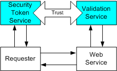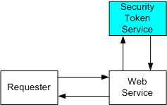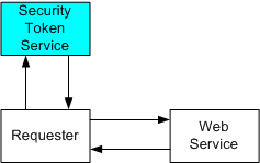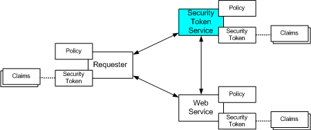 下图演示了此模型,其中显示了任何请求者也可能是服务,安全令牌服务也可能完全是 Web 服务,包括表示策略和要求安全令牌。