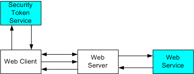 假设我们提供了一个 Web 客户端与中间层 Web 应用程序通信的示例,而中间层 Web 应用程序又与另一个域中的 Web 服务通信(安全)。 中间层 Web 应用程序(可感知 Web 服务)想要获取 Web 客户端的安全令牌。
