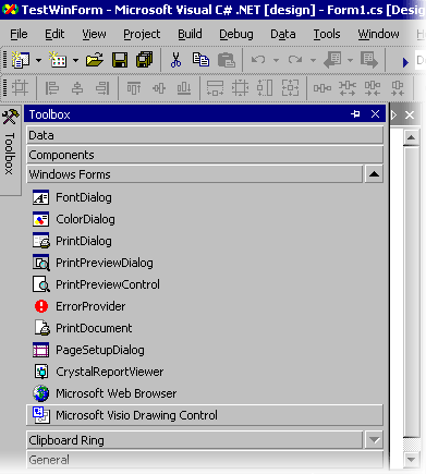 图 3. Visual Studio .NET 工具箱中的 Visio 绘图控件