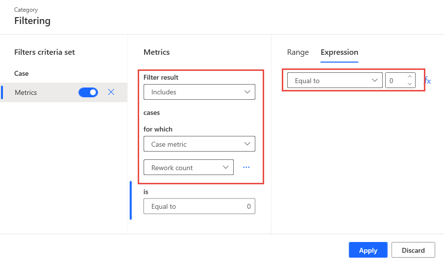 例如,考虑以下应用场景:您想要比较包含返工的案例与不包含返工的案例。 第一步是创建不包含返工的案例的视图。 为此,您将创建一个筛选器。