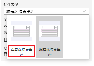 • 设置为下拉菜单(对于单选)或组合框(对于多选)。 (当您添加编辑窗体时,Power Apps 将使用组合框设置两者。)