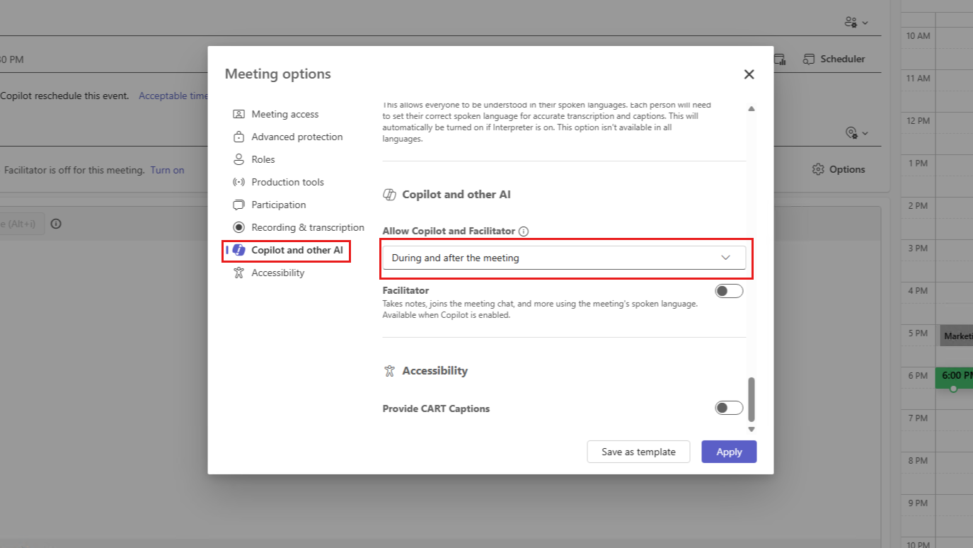 有关详细信息,请参阅 在 Microsoft Teams 会议中使用 Copilot。