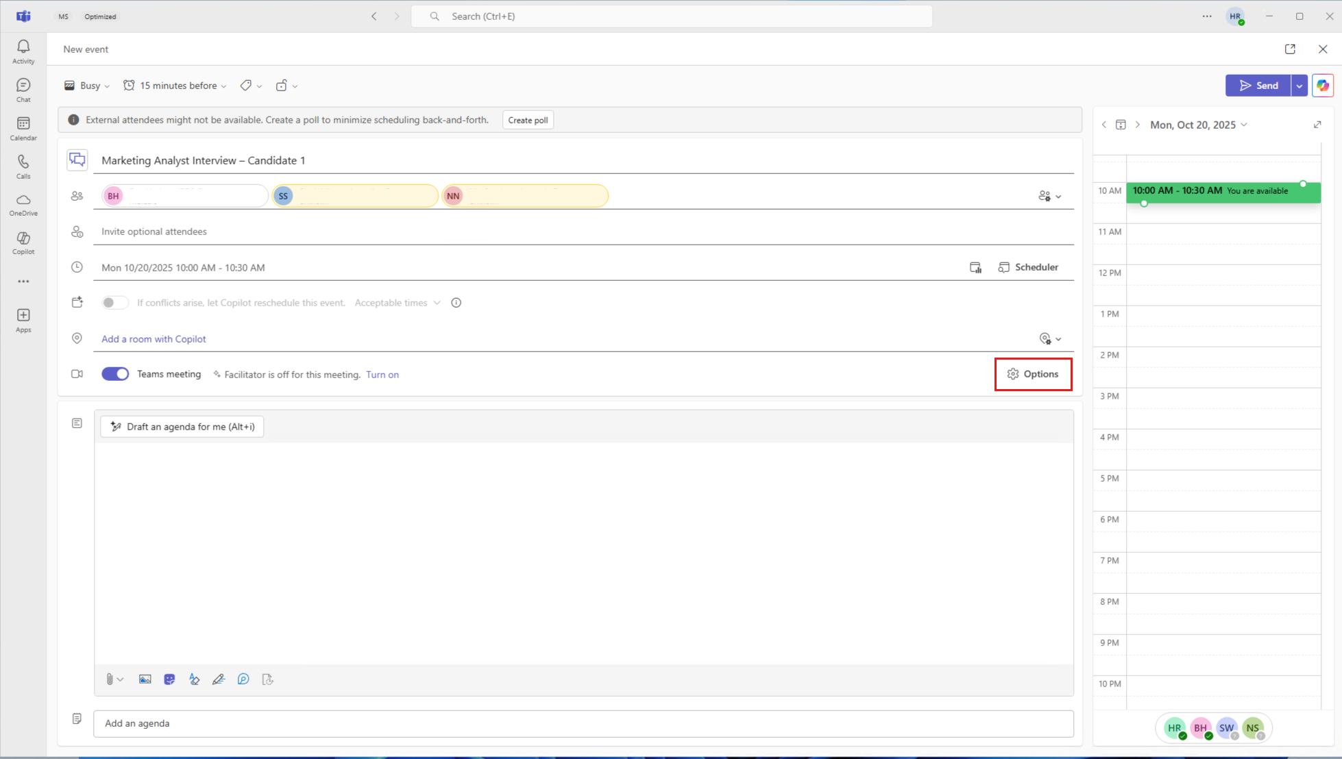 在 Teams 中安排面试