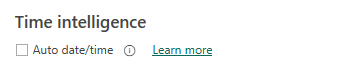 虽然本选项可能对数据建模新手或试验有用,但最好禁用它。 您可以使用现有的源数据表,也可以使用 DAX 创建计算表。 模型中的每个日期表都应包含日期列并标记 为日期表。 这样,DAX 时间智能函数就会返回适当的结果。