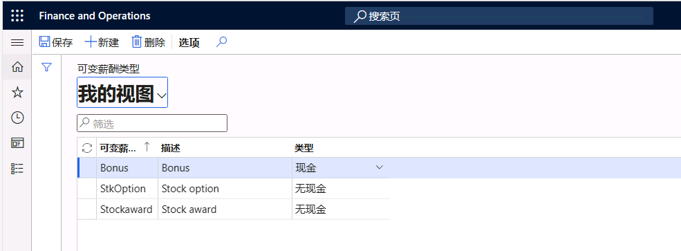 在类型字段中,选择可变薪酬是现金还是非现金。