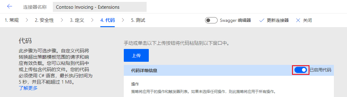 在本任务中,您将在 Contoso Invoicing 自定义连接器中创建一项新操作。