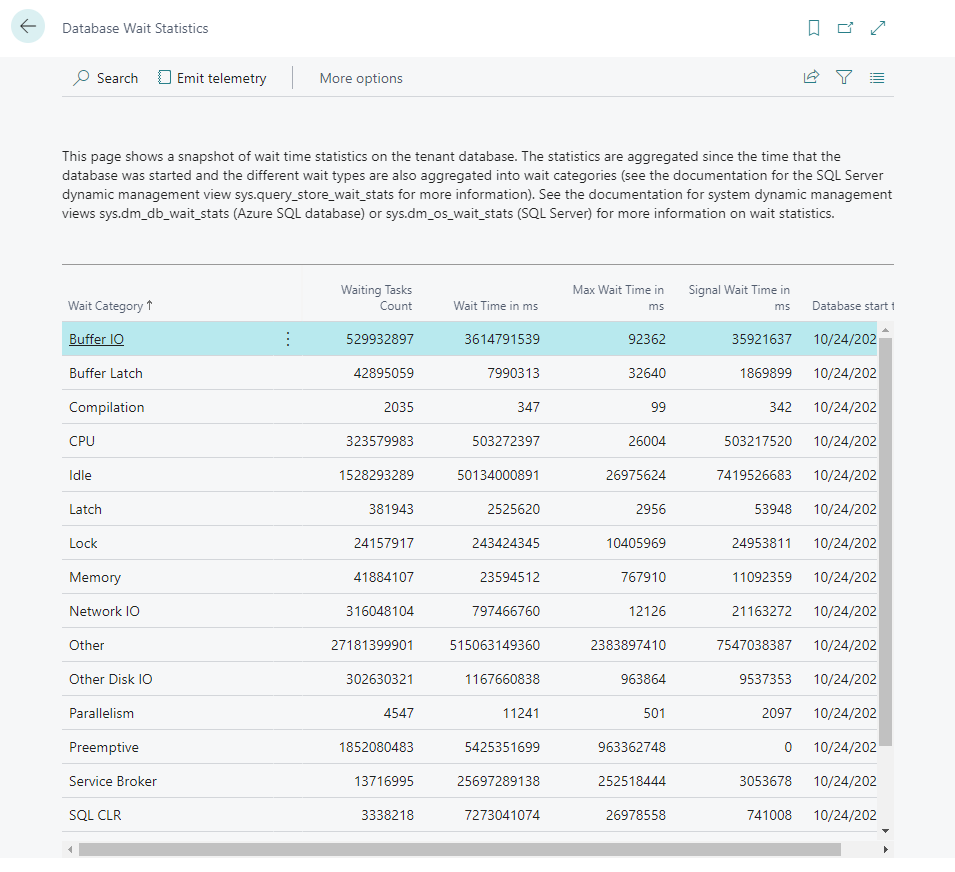 您可以通过查看 Business Central 数据库等待统计信息提供的信息来了解数据库性能。