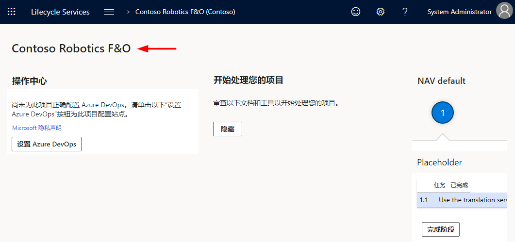 将 Web 浏览器选项卡切换到 Lifecycle Services 项目页面。