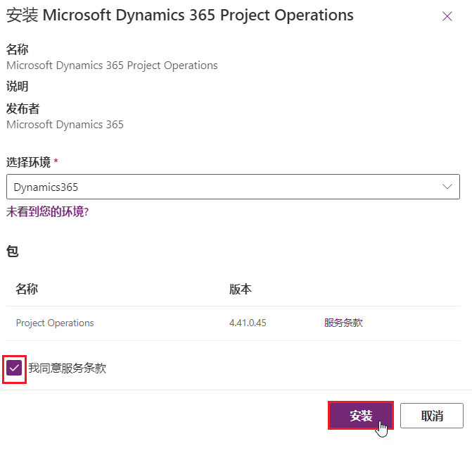 要安装 Dynamics 365 Project Operations,请按照以下步骤操作: