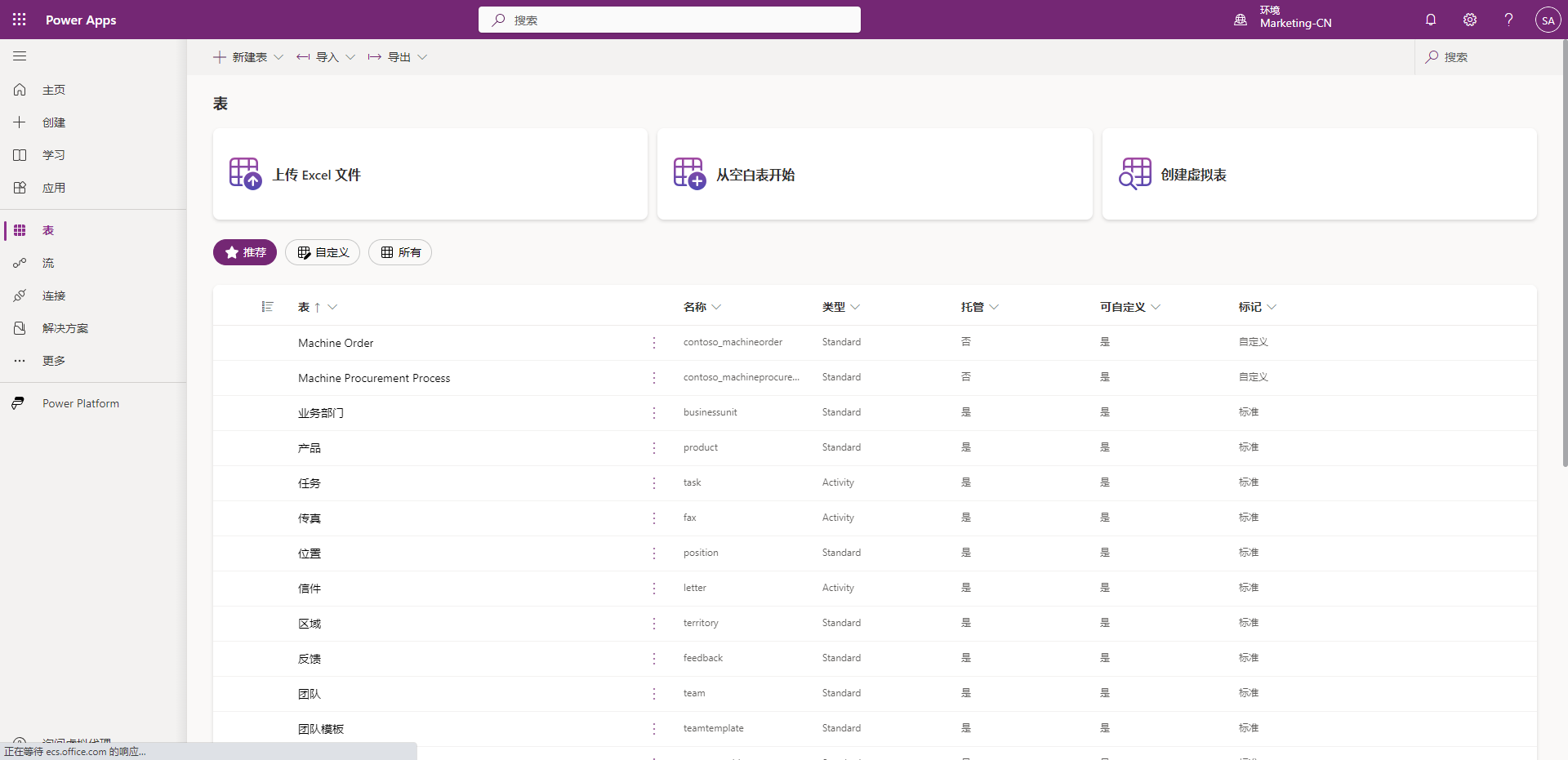Dataverse 有助于使用内置表和自定义表更轻松地为应用定义数据模型。 它包括一组基本的标准 表,可支持常见的业务应用场景。 您还可以创建为组织定制的自定义 表,并使用 Microsoft SharePoint、Microsoft Excel 或 Power Query 中的数据填充这些表。
