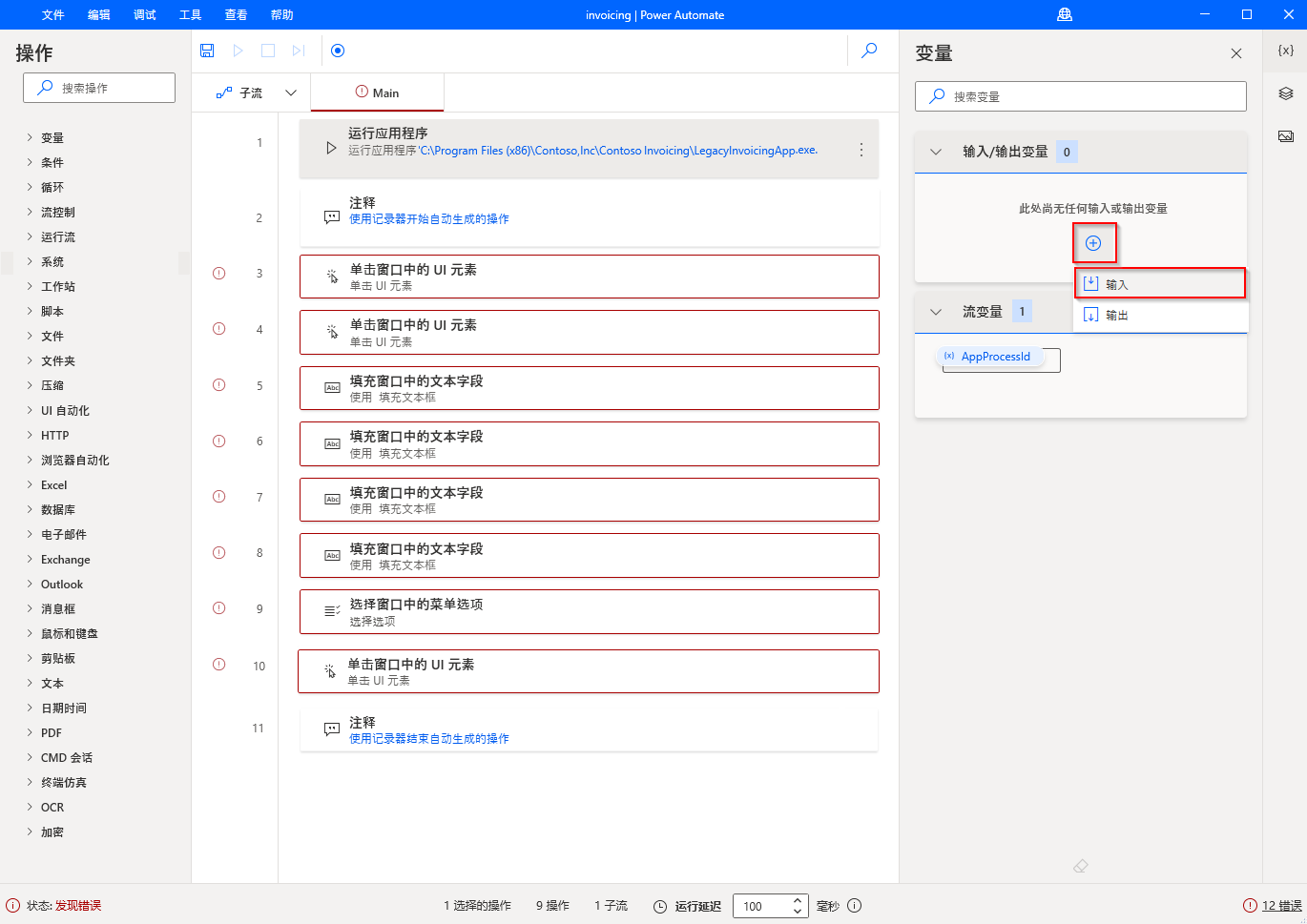 变量可以让信息随着流的每一次运行而发生变化。 如果要使用流来执行任何类型的数据输入,您需要变量来定义您需要输入的字段。 输入变量包括您在运行之前或期间输入到流中的信息。 输出变量是流在运行后返回的结果。 Power Automate 桌面版支持您从云端流接收输入值,并使用输出变量返回值。 这样一来,您的自动化便可无缝集成。 若要定义输入变量,请先从 Power Automate 桌面版应用开始,然后通过编辑桌面流打开设计器。