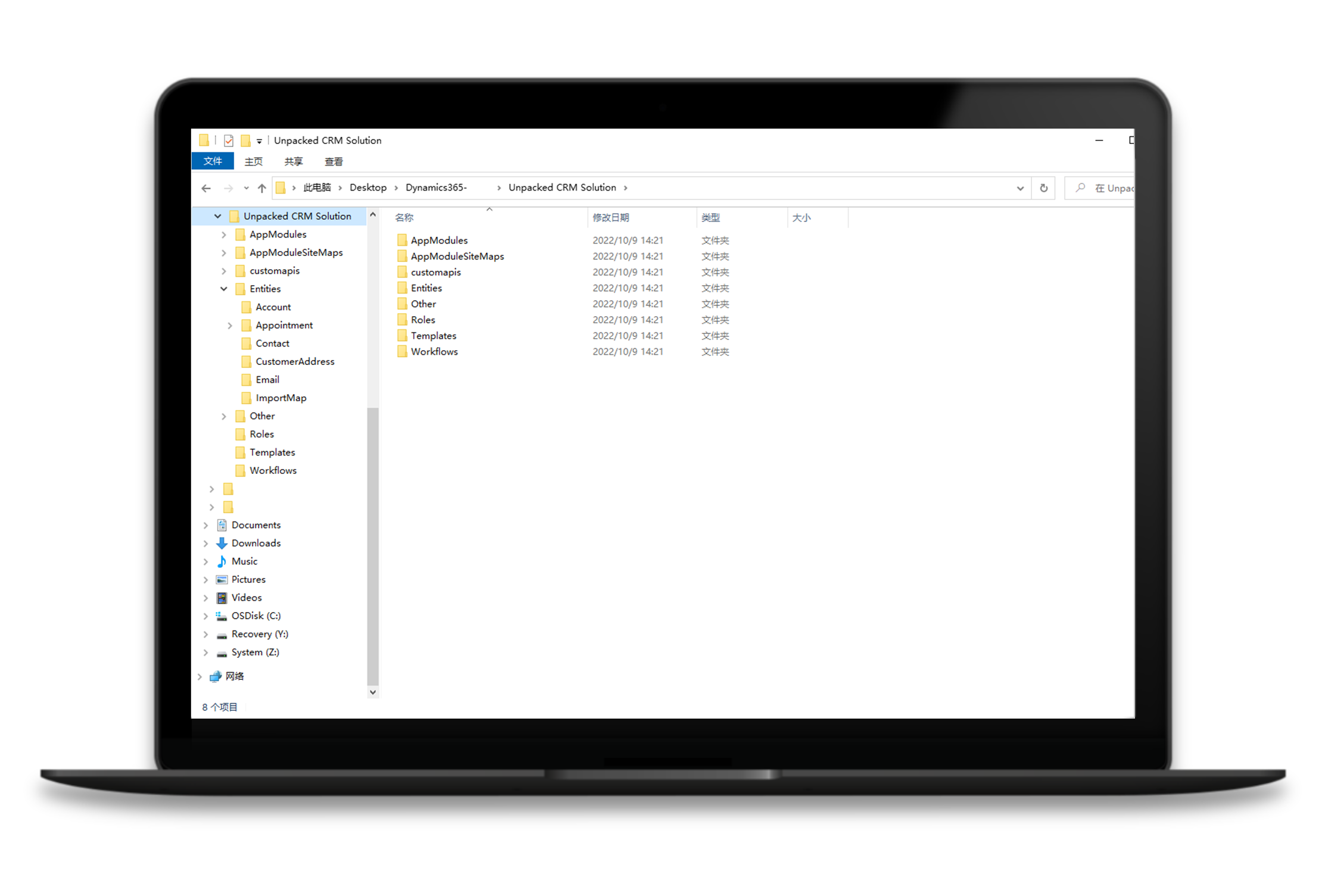 从环境中导出时,解决方案的格式为 zip 文件。 在压缩格式中,架构定义包含在标记为 customizations.xml 的一个大型文件中。