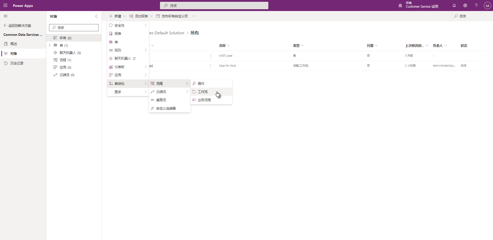 根据环境版本,该解决方案也可以命名为 Common Data Services 默认解决方案。