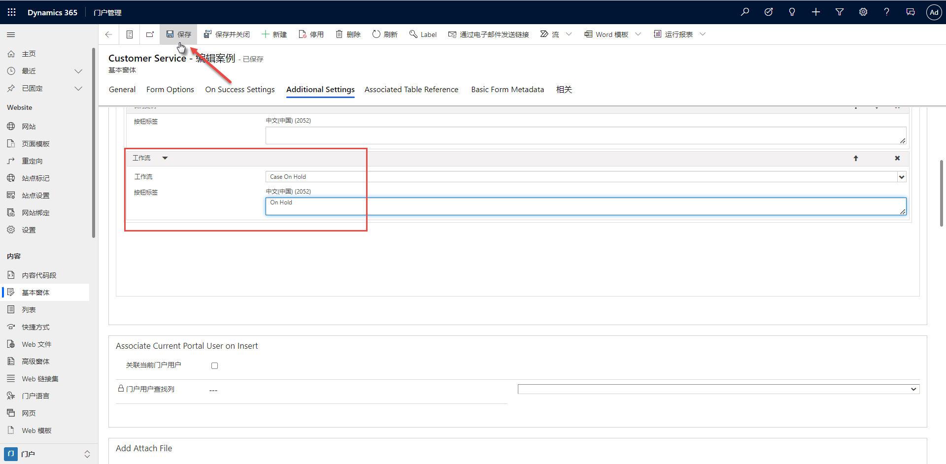 向现有编辑案例窗体添加工作流操作按钮。