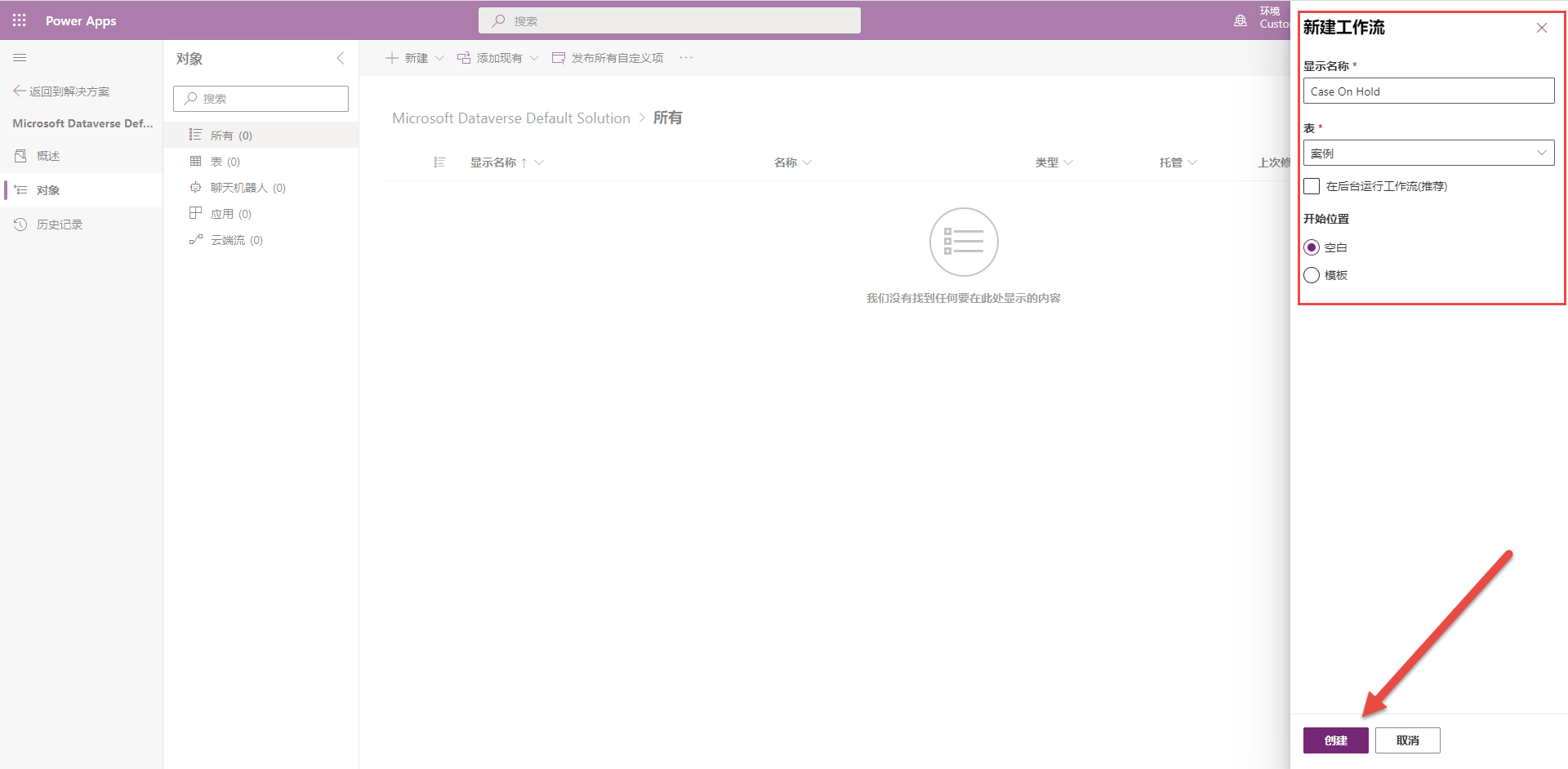 选择 Microsoft Dataverse 默认解决方案。
