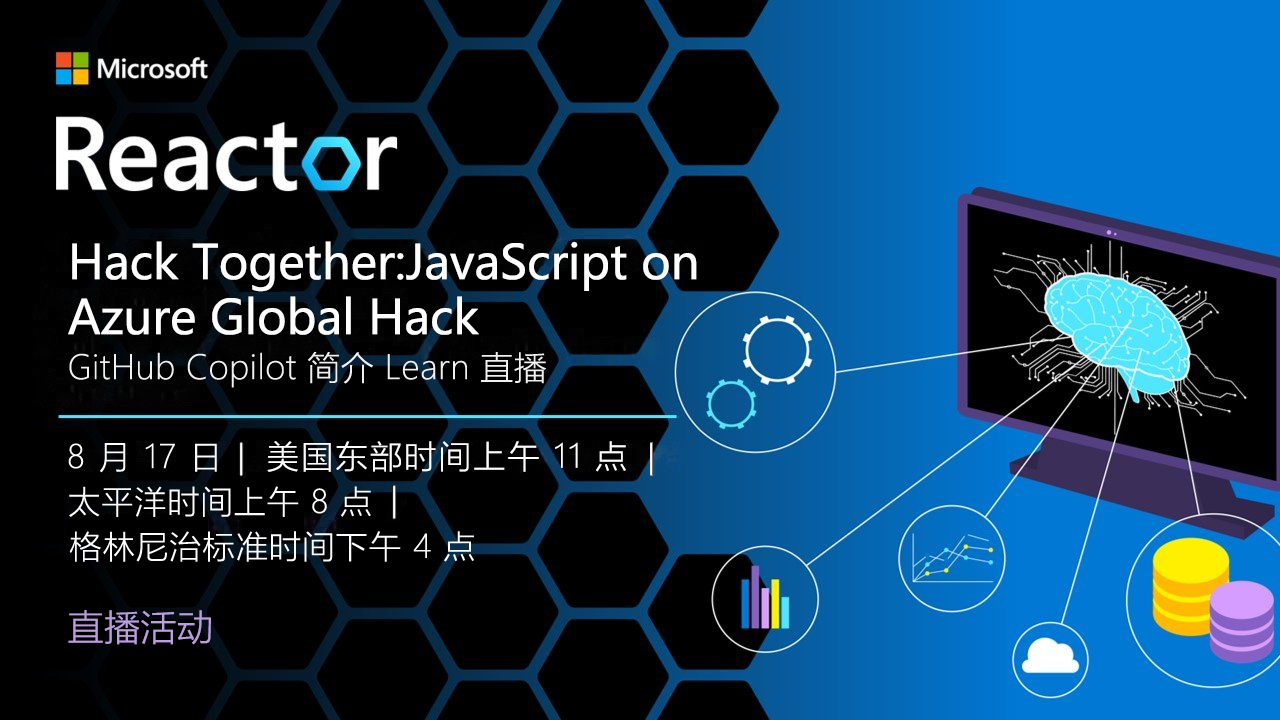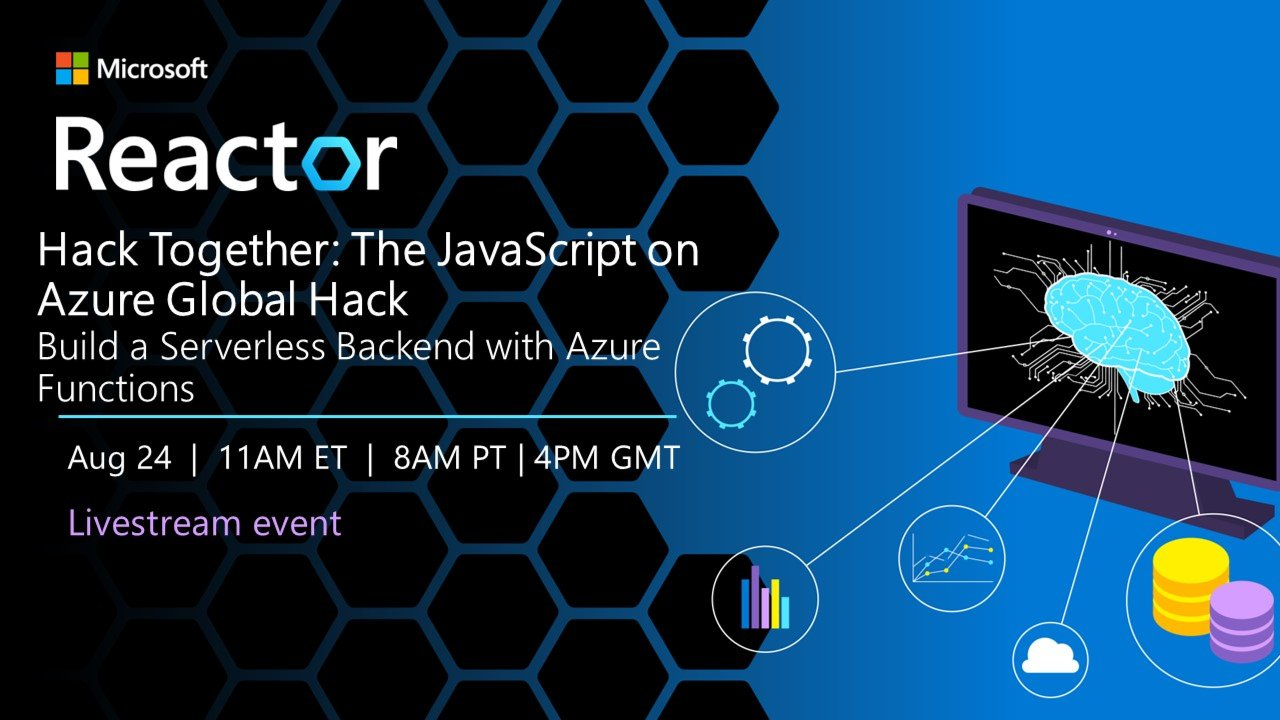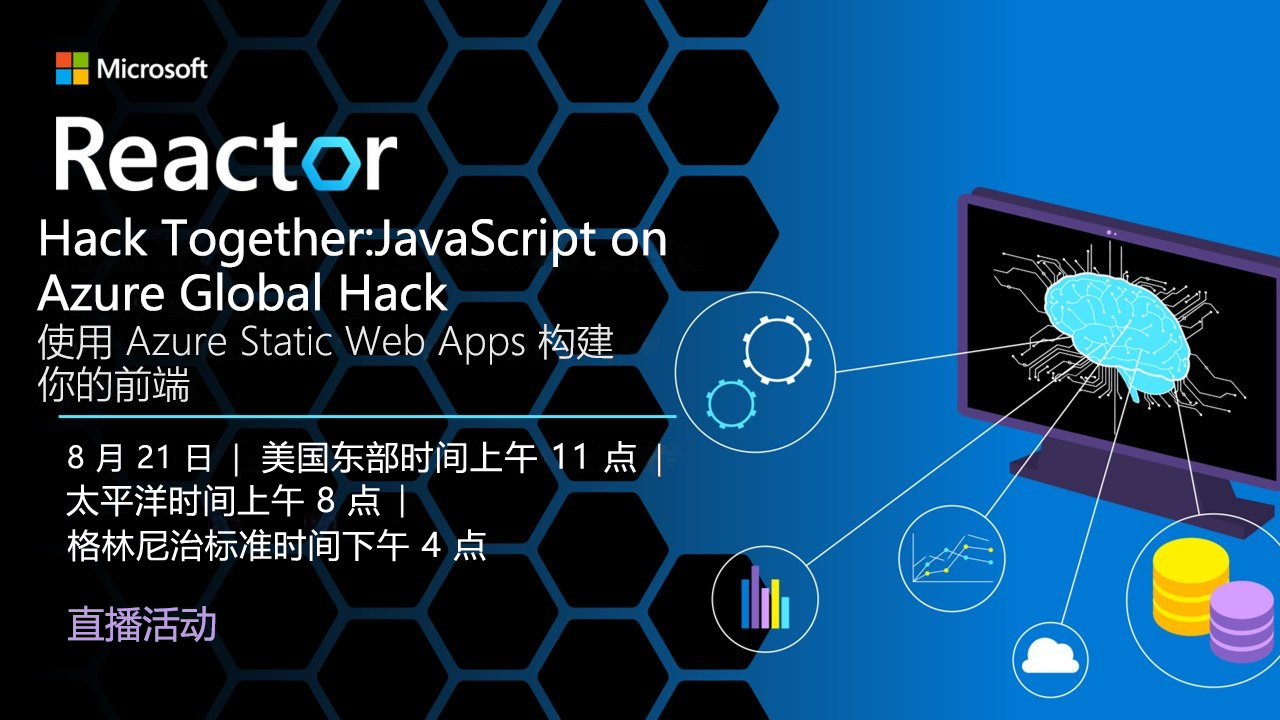加入 Hack Together: Azure 国际黑客马拉松上的 JavaScript,这是一个为期 15 天的虚拟黑客体验活动,您可在 8 月 16 日通过参与 Azure Functions、静态 Web 应用 & 和 Azure Cosmos DB,学习构建真实世界的端到端应用程序。