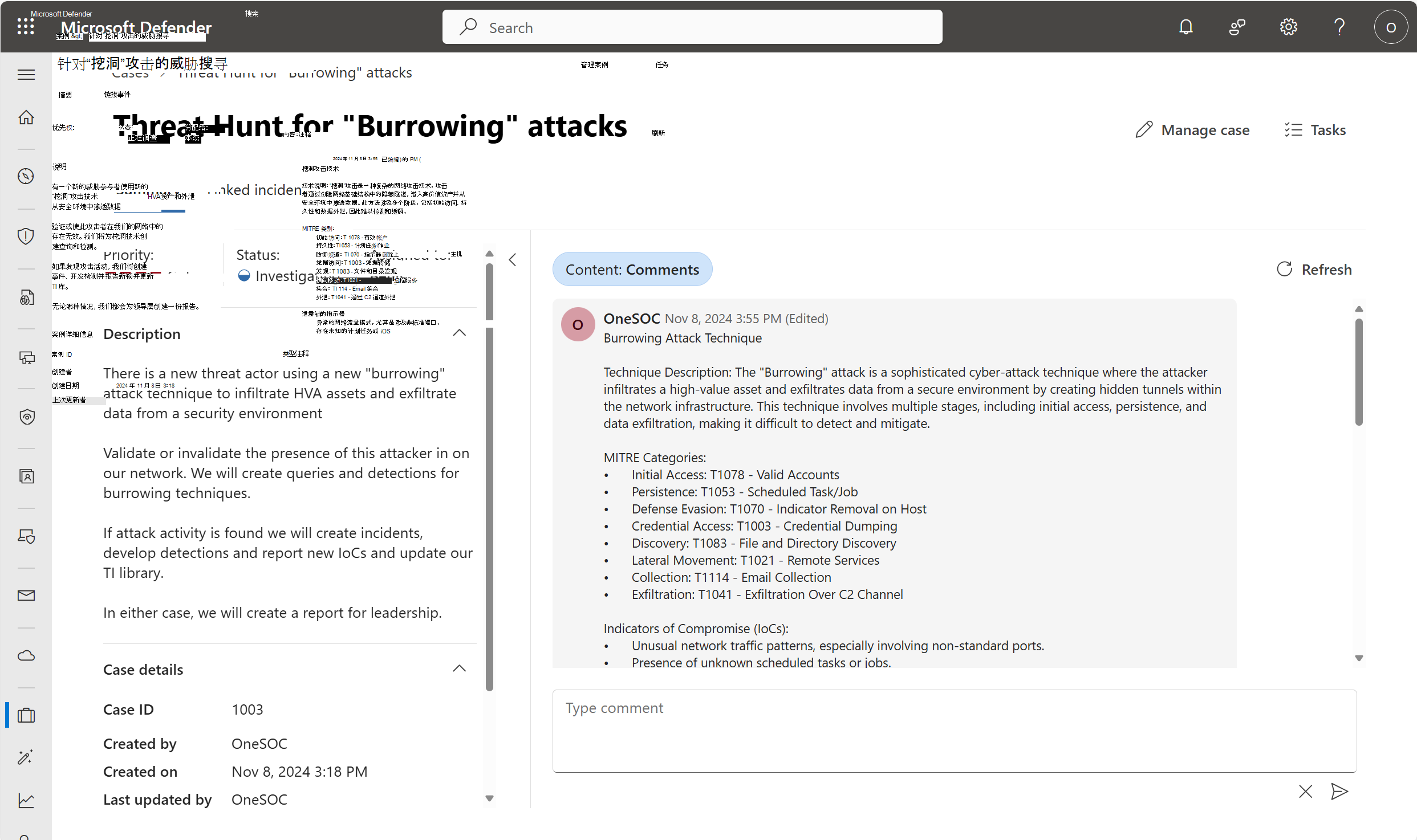 案例管理使你能够在 Defender 门户中本机管理 SecOps 案例。 即使在初始阶段,SecOps 团队也会演示以下案例管理用例: