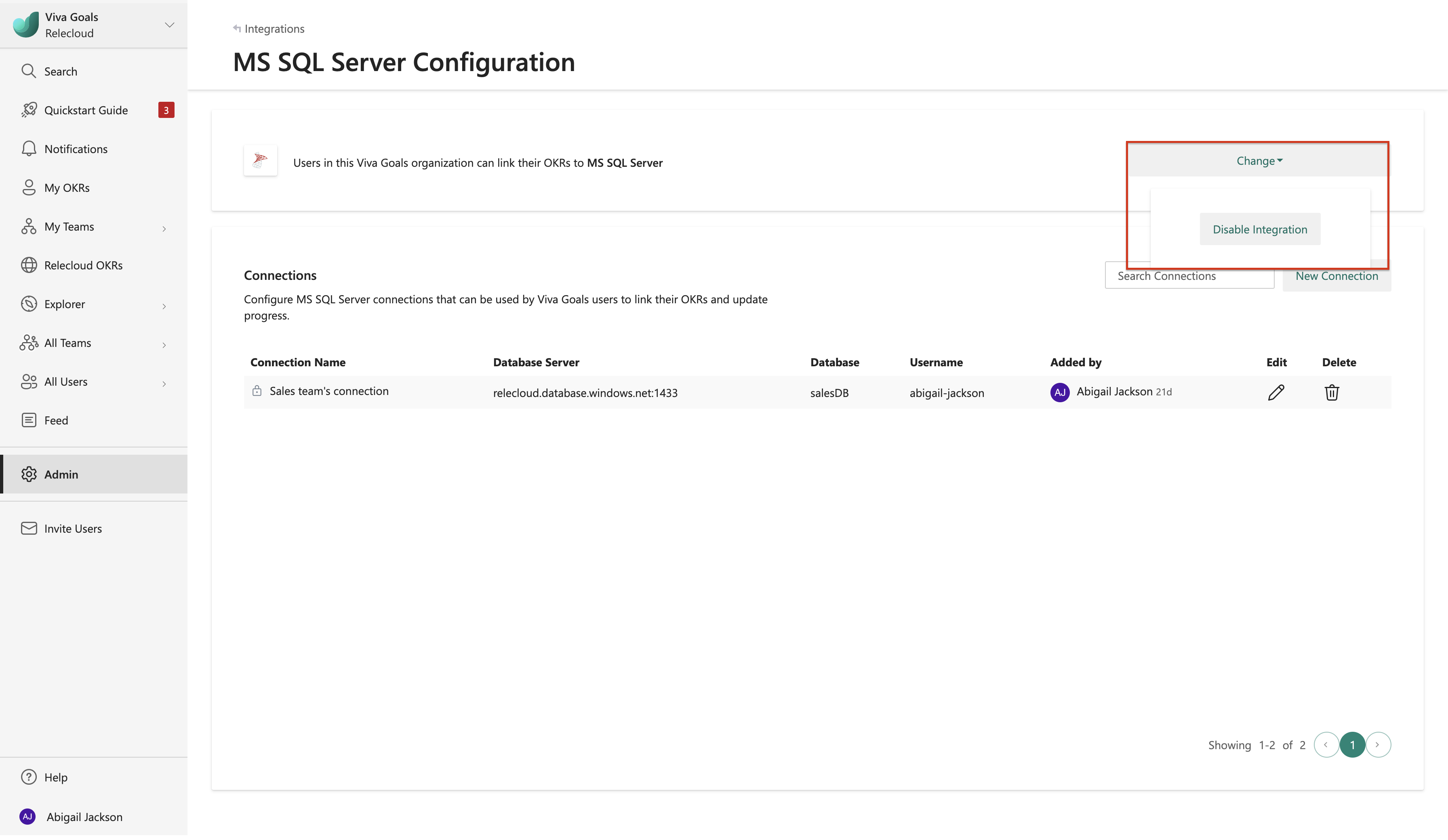设置集成后,可以通过将 OKR 与Microsoft SQL Server数据库连接来衡量 OKR 进度。