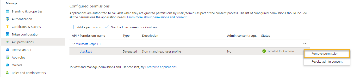 删除 API 权限: